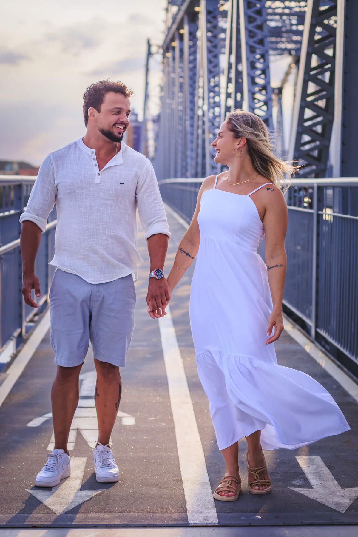O ensaio pré-wedding da Bruna foi um verdadeiro conto de fadas, realizado na icônica Ponte Hercílio Luz, em Florianópolis. Com a ponte como cenário majestoso e o pôr do sol iluminando cada momento, as fotos capturaram toda a beleza e a emoção desse amor que se eterniza. 💕