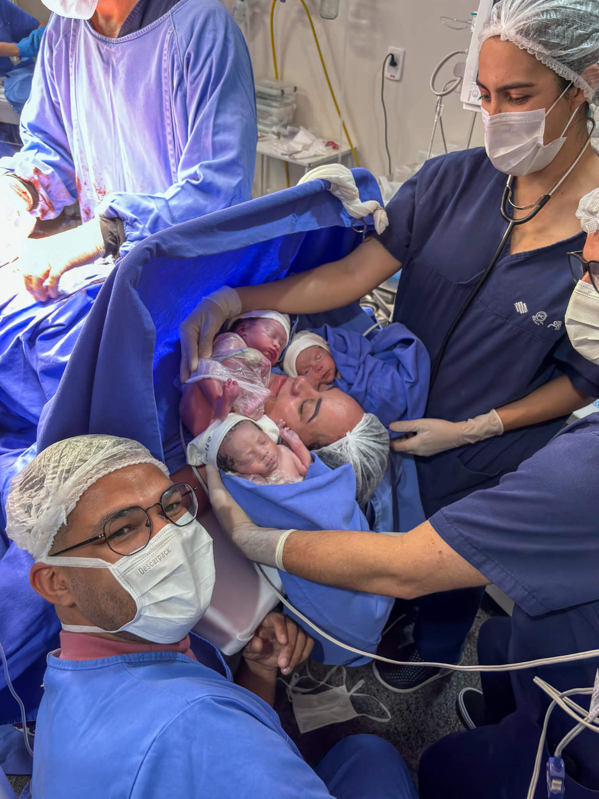 Fotografia de Parto de Trigêmeas em Florianópolis: A Chegada Emocionante das Meninas da Ju